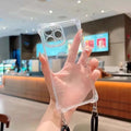 Transparent Shockproof Cases for iPhone 14 Plus 13 Pro Max 12 Mini 11 XS XR X 8 7 Cover Rope Hole Drop Buffer Soft Phone Bumper
