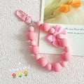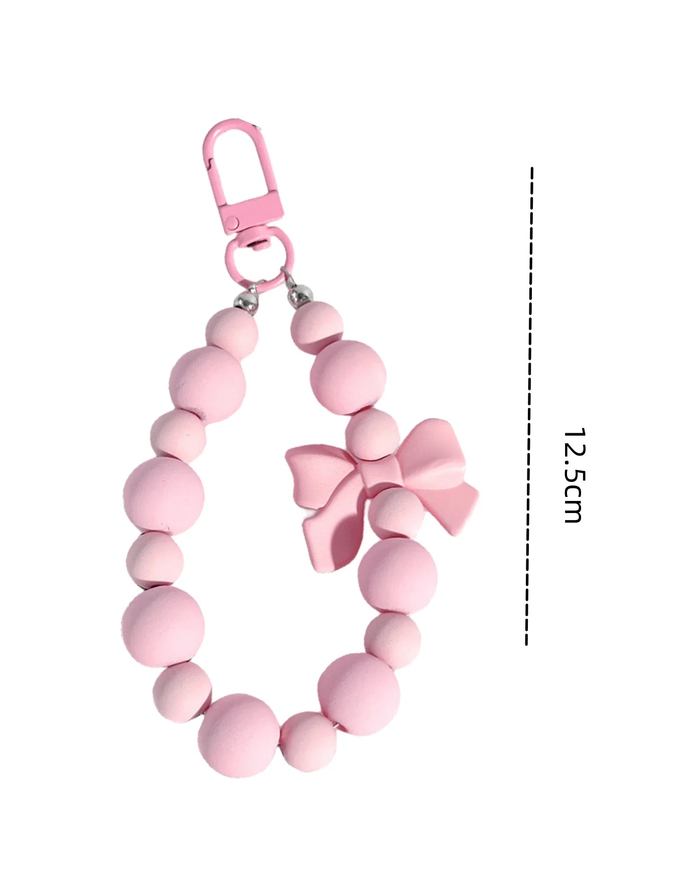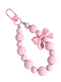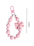 Pink pearl bow keychain, mobile phone chain, earphone bag, anti-lost rope, car keychain, beaded pendant, backpack pendant access