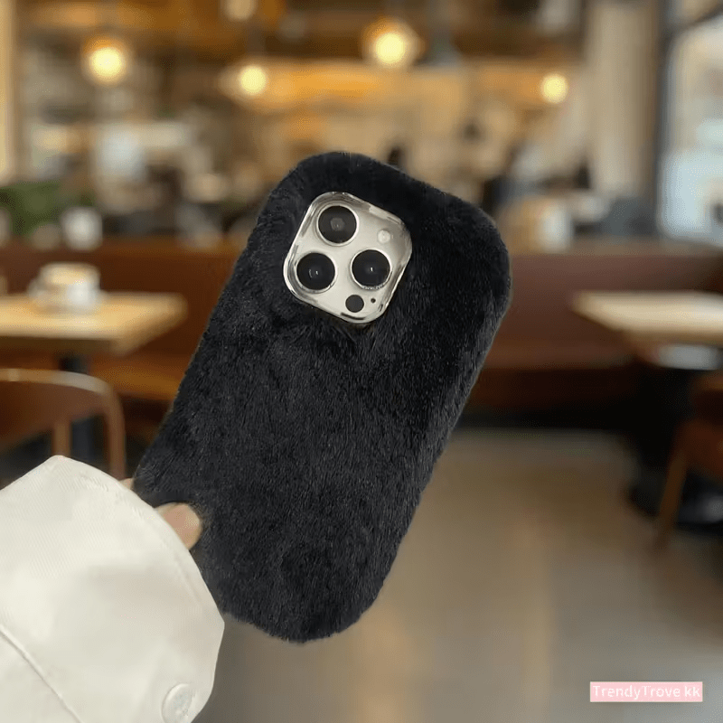 Plush Black And White Phone Case Suitable for Apple 17/17 Air/17 Pro/17 Pro Max/16 Pro Max/16 Pro/16/15 Pro Max/15 Pro/15/14 Pro Max/14 Pro/14/13 Pro Max/13 Pro/13 Autumn And Winter Phone Case