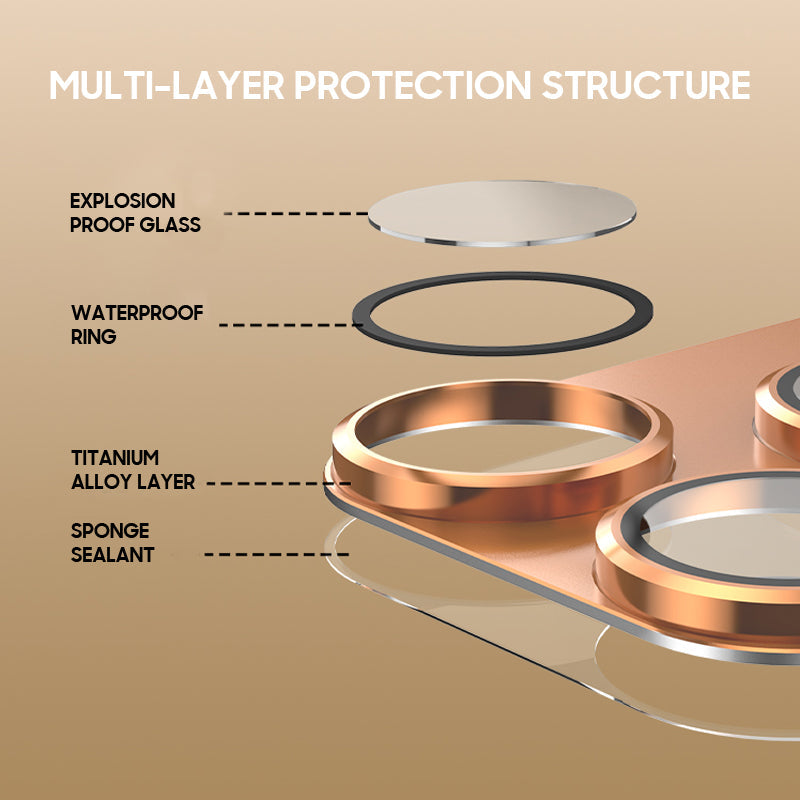 The camera protector consists of multiple layers of protection with an added layer of 9H tempered glass that does not affect photographic photo clarity and minimizes damage from bumps, scratches, and stains. The protective film is made of aluminum alloy.