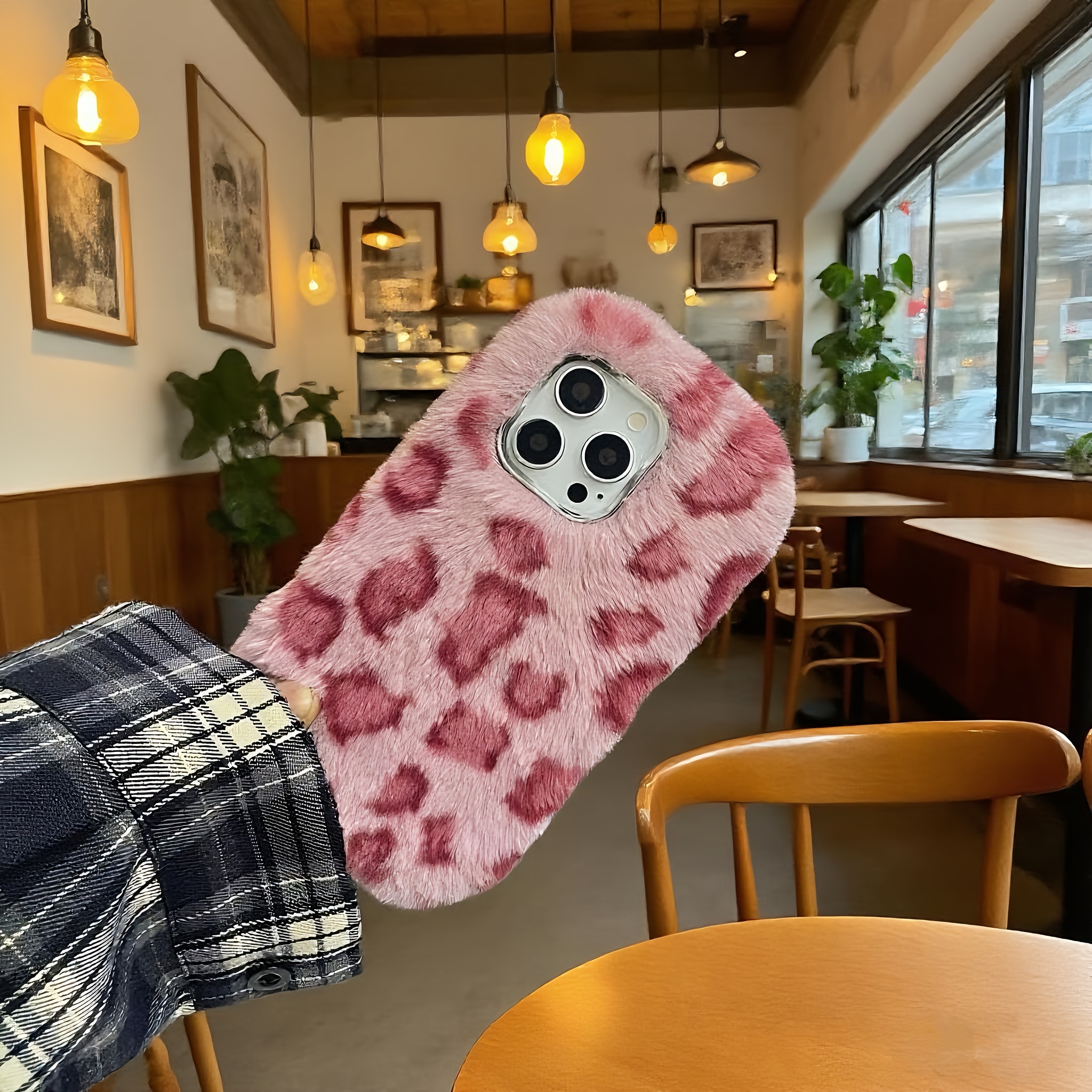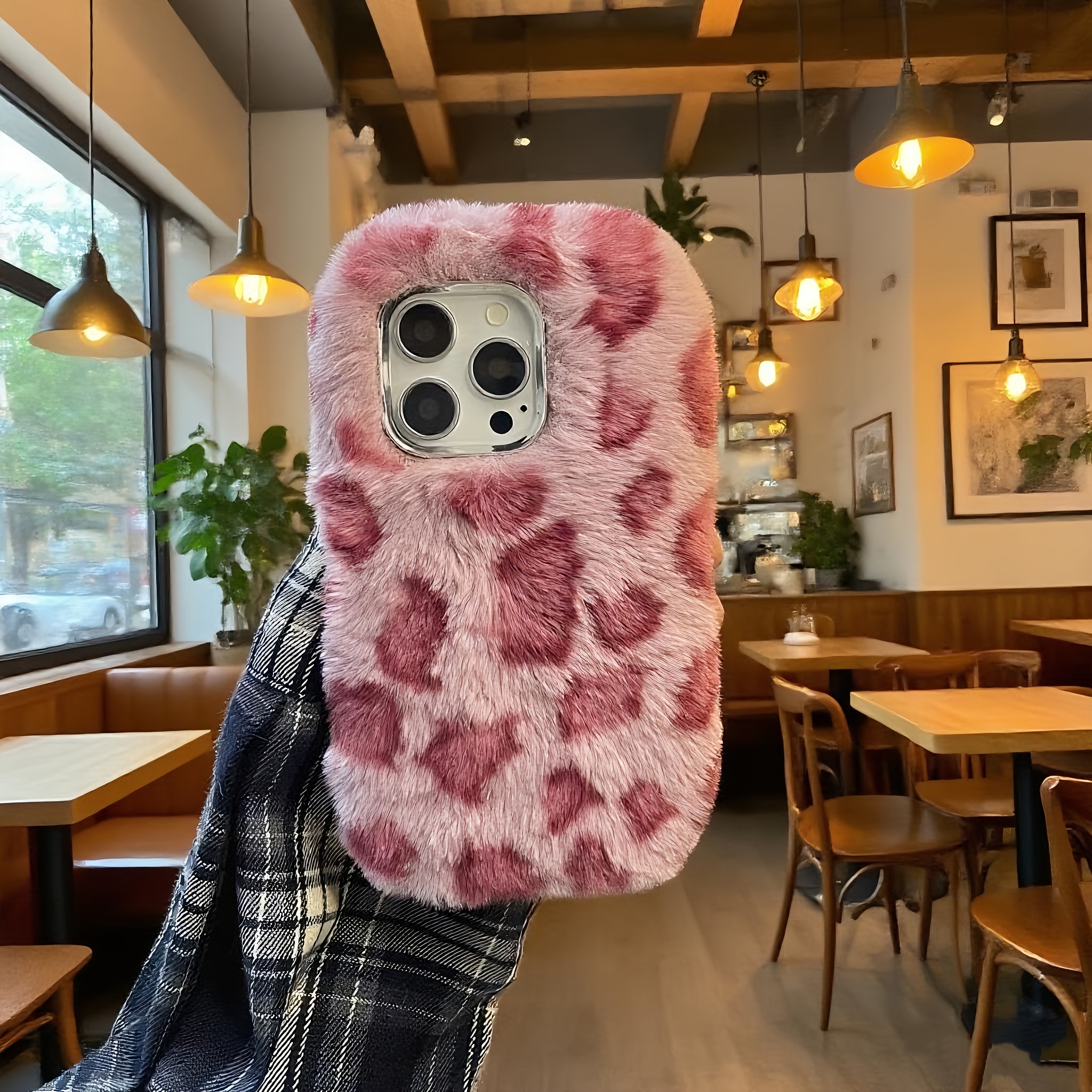 The Plush Fuchsia Leopard Phone Case Is Suitable for Iphone 16 Pro Max/16 Pro/16/15 Pro Max/15 Pro/15/14 Pro Max/14 Pro/14/13 Pro Max/13 Pro/13, Providing Warmth for The Autumn And Winter Seasons., Phone Case, Case